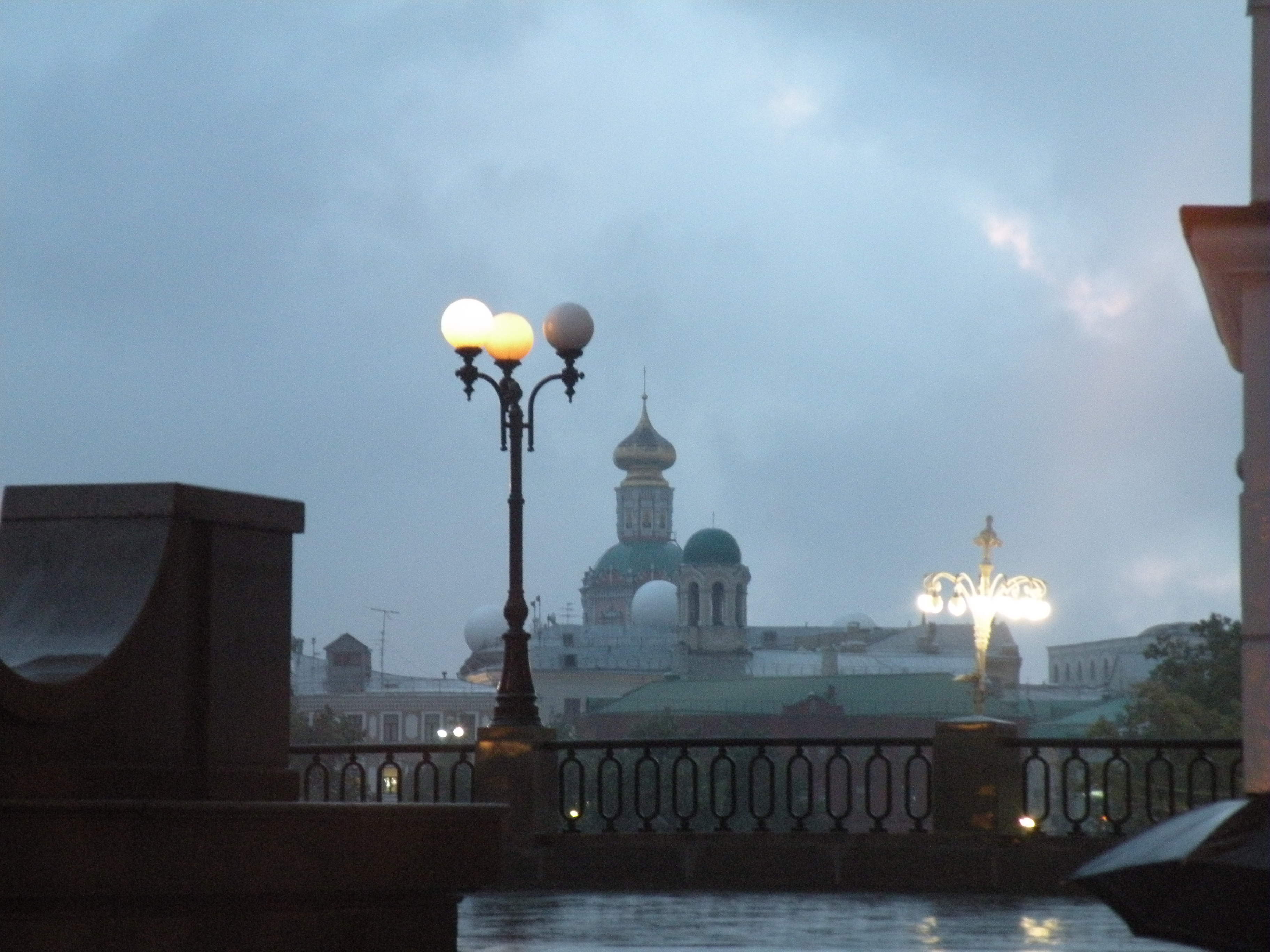 Finally, I give you the street outside the Bolshoi Theatre, under a downpour. This is almost definitely the wrong time of day for the rain qualify as such, but I learnt of an interesting Russian expression whilst walking through the rain in Moscow: when it rains whilst the sun is shining, it is referred to as ‘mushroom rain’, because these are apparently the optimal conditions for growing mushrooms in the forest.